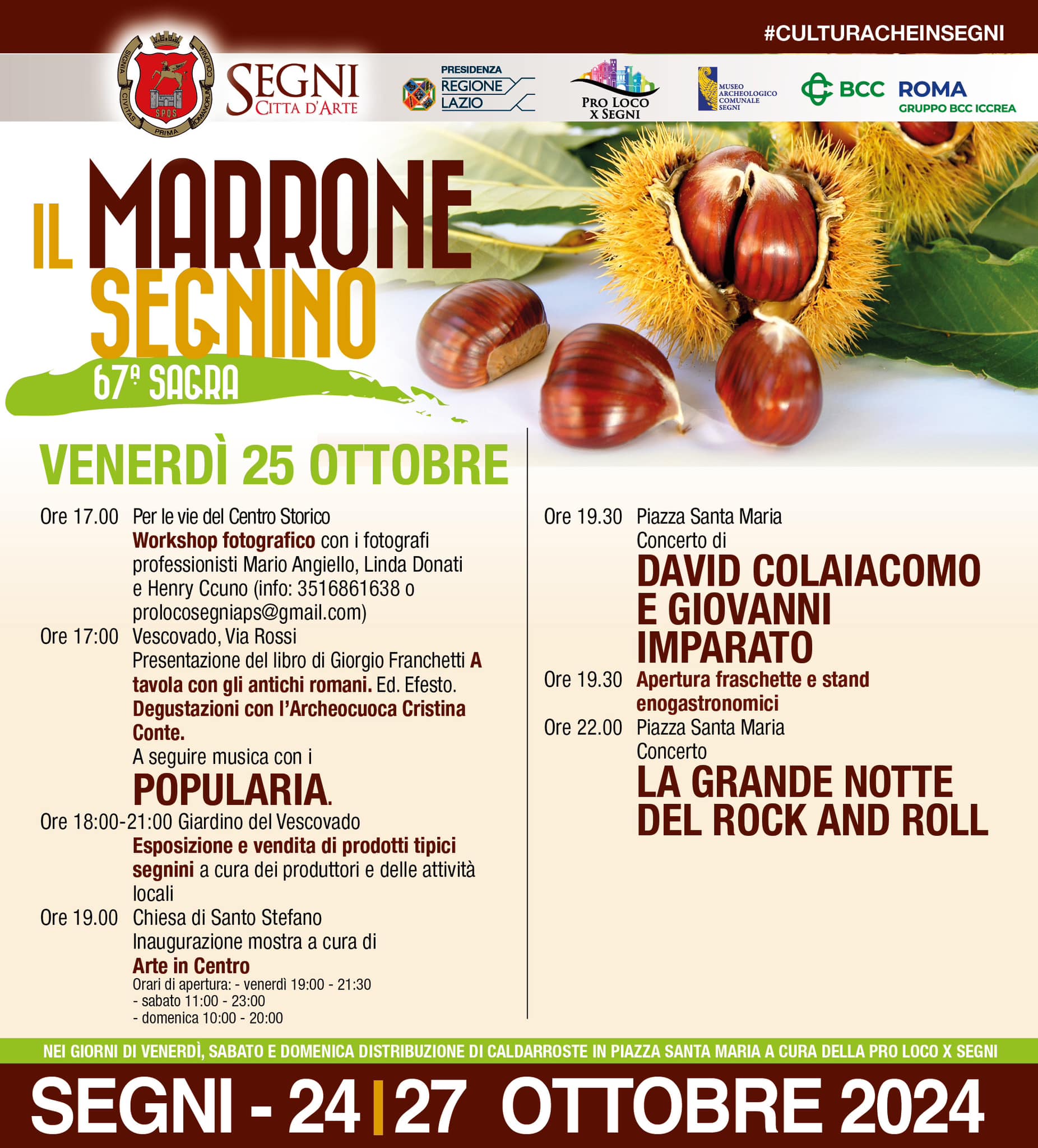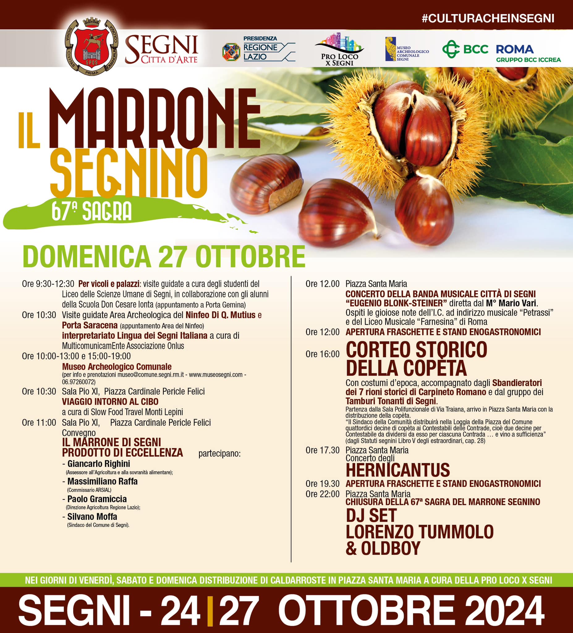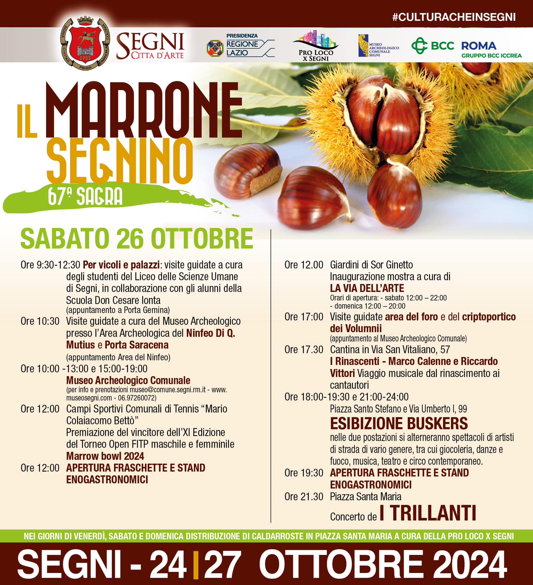 Segni aspetta tanti visitatori per offrire, dal 24 al 27 ottobre 2024, musica, arte, divertimento, storia, tradizioni e cultura nel cuore del centro storico.