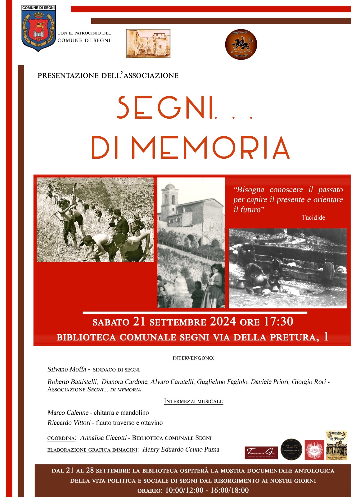 Presentazione dell'associazione Segni...di Memoria e della Mostra documentale antologica della vita politica e sociale di Segni dal Risorgimento ai nostri giorni (dal 21 al 28 settembre)