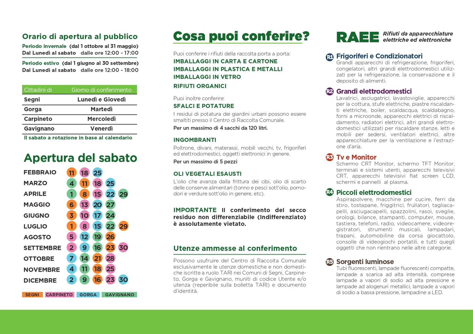 Calendario e orari vigenti relativi alla raccolta dei rifiuti urbani, con riferimento a tutte le modalità di raccolta a disposizione dell’utente, ivi inclusi i centri di raccolta e con esclusione delle eventuali modalità di raccolta per cui non è effettuabile una programmazione.